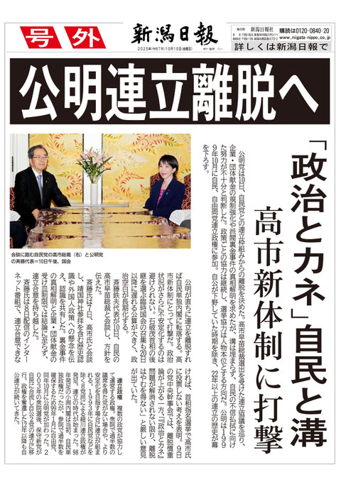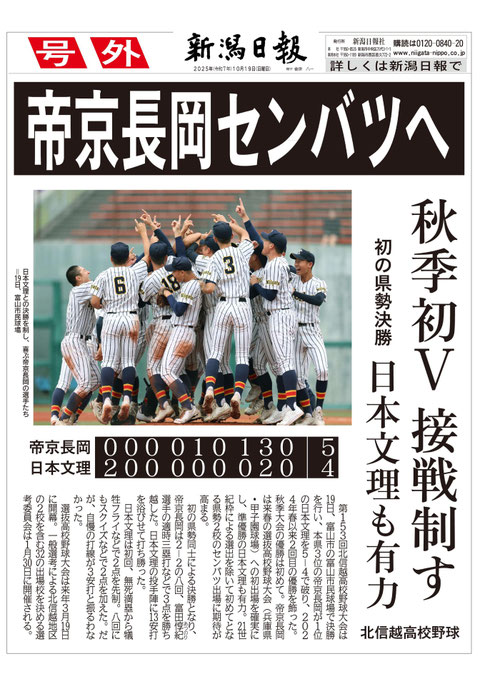 【新潟日報・号外10/19】帝京長岡センバツへ